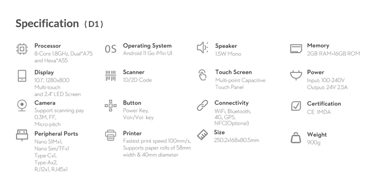 D1系列是一款專門為中小型餐飲零售業者打造的桌面POS設備。