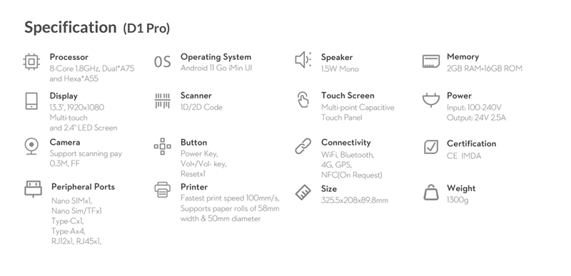 D1系列是一款專門為中小型餐飲零售業者打造的桌面POS設備。