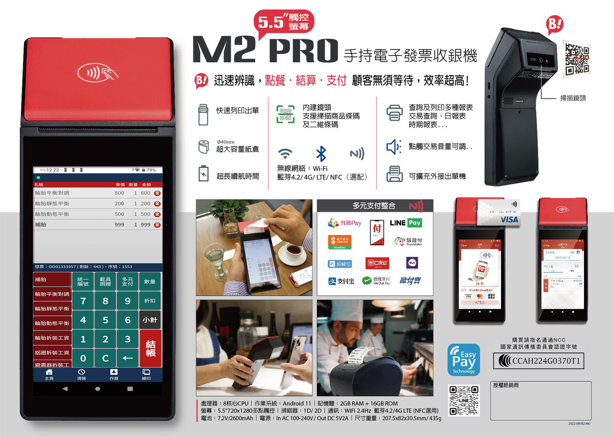 內置日本精工高速印表機,實現預約取號,收銀結賬,票據列印,適用於行動應用。