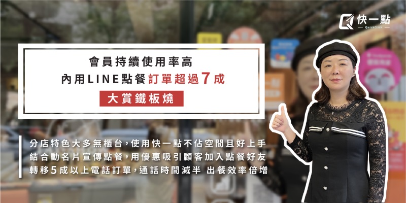 【連鎖鐵板燒】大賞鐵板燒 | 會員持續使用率高 內用LINE點餐訂單超過7成